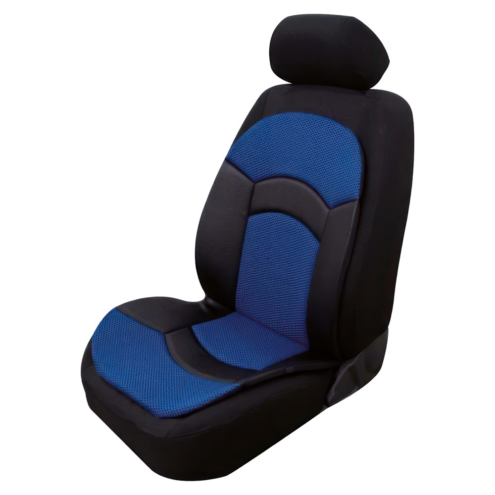100% poliester. Kombinim i pëlhurës së thurur Jacquard me një pamje lëkure. I përshtatshëm për automjete me airbag anësor. Përmasa universale. Ngjyra: Blu.