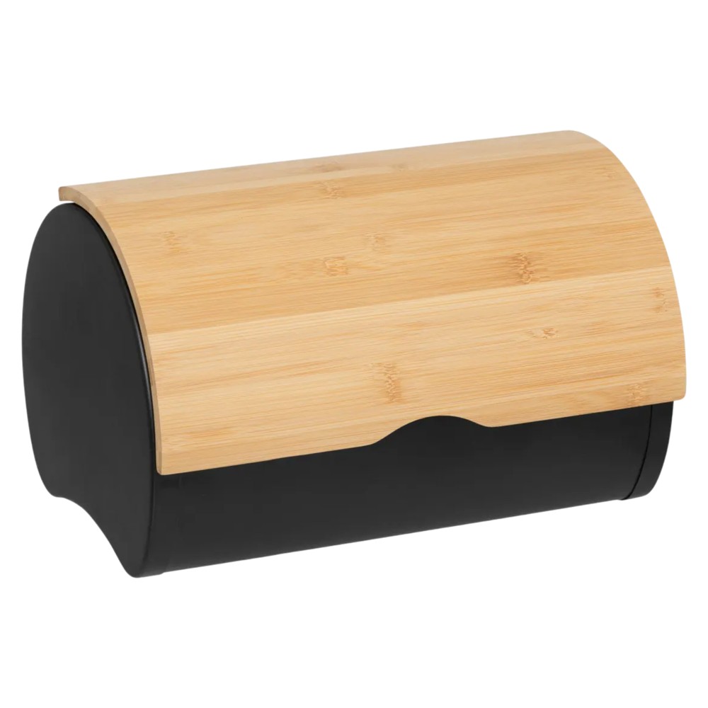 Bread container, steel/bamboo, natural/black, 32x20.5x24 cm