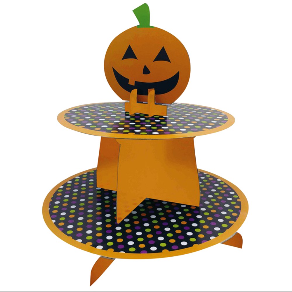 Mbajtëse ëmbëlsirash, Halloween, 2 kate, karton, portokalli dhe e zezë, 1 copë