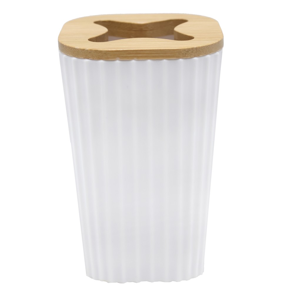 Mbajtëse furçe dhëmbësh, plastik/bambu, e bardhe/bambu natyrale, 7.5x7.5xH12cm