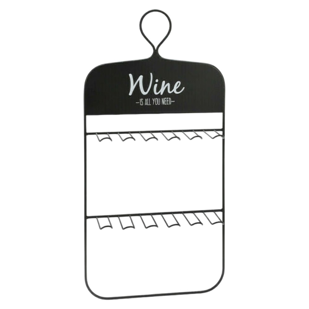 Po vlerësoni:Mbajtëse gota vere, me varje, metal, e zezë, 31x11xH60 cm