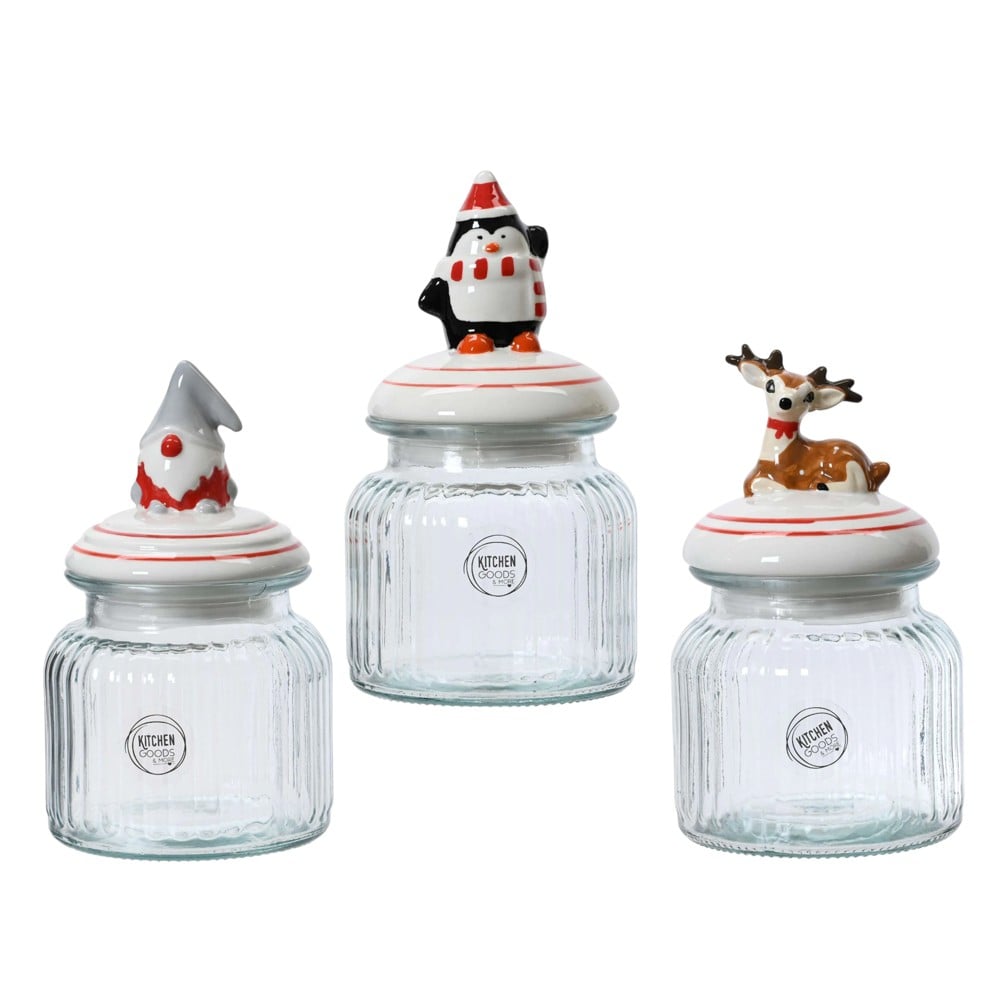 Salt and sugar holder, Christmas motifs, glass, dia10.8-H20cm