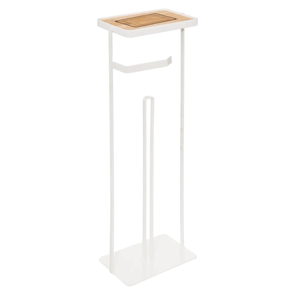 Mbajtëse letre higjenike, me rezervë, metal/bambu, e bardhë/kafe, 18x12xH58 cm