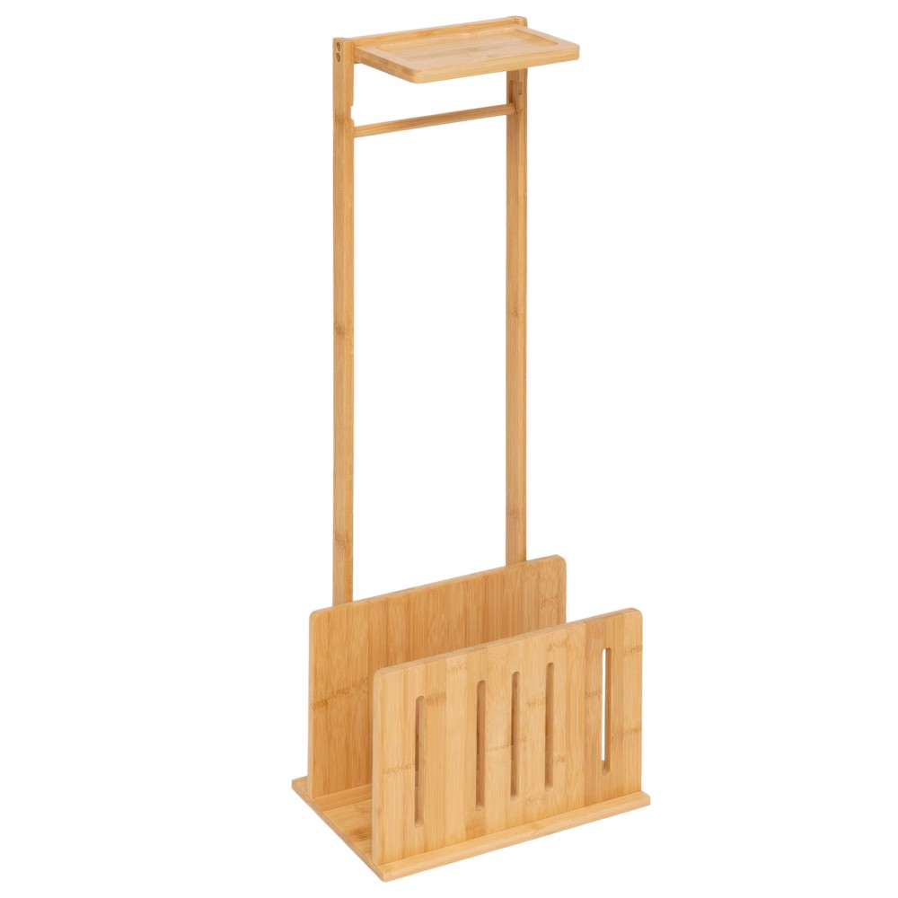 Mbajtëse letre higjenike me rezervë në material bambu ngjyrë dru natyral. Përmasat, H : 82 cm, W : 31 cm, P : 21 cm.