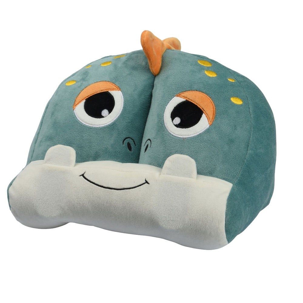 Mbajtëse për tablet apo libër, prej materiali të butë pellushi, në formën e një dinosauri ngjyrë jeshile, dhe në një përmasë prej 30x20x20 cm. Me anë të kësaj mbajtësje fëmijët do të jenë më të tërhequr për të lexuar libra, apo të shikojnë filmat e tyre të preferuar në tablet.