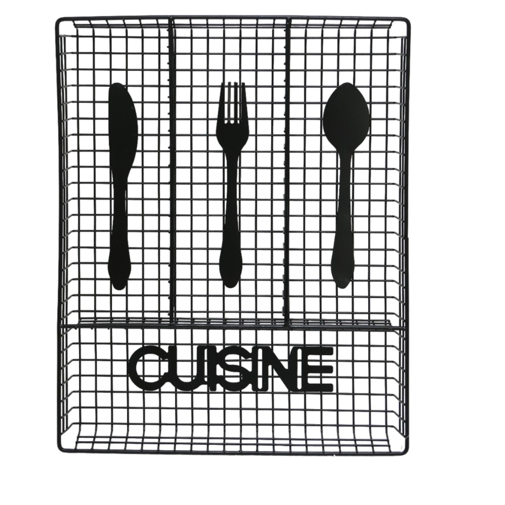 Mbajtëse elegante për lugë dhe pirunje, e realizuar nga metali në ngjyrën e zezë. Produkti ka dimensionet 26x32.5xH4 cm, duke ofruar një zgjedhje të shkëlqyer për organizimin e aksesorëve të kuzhinës.