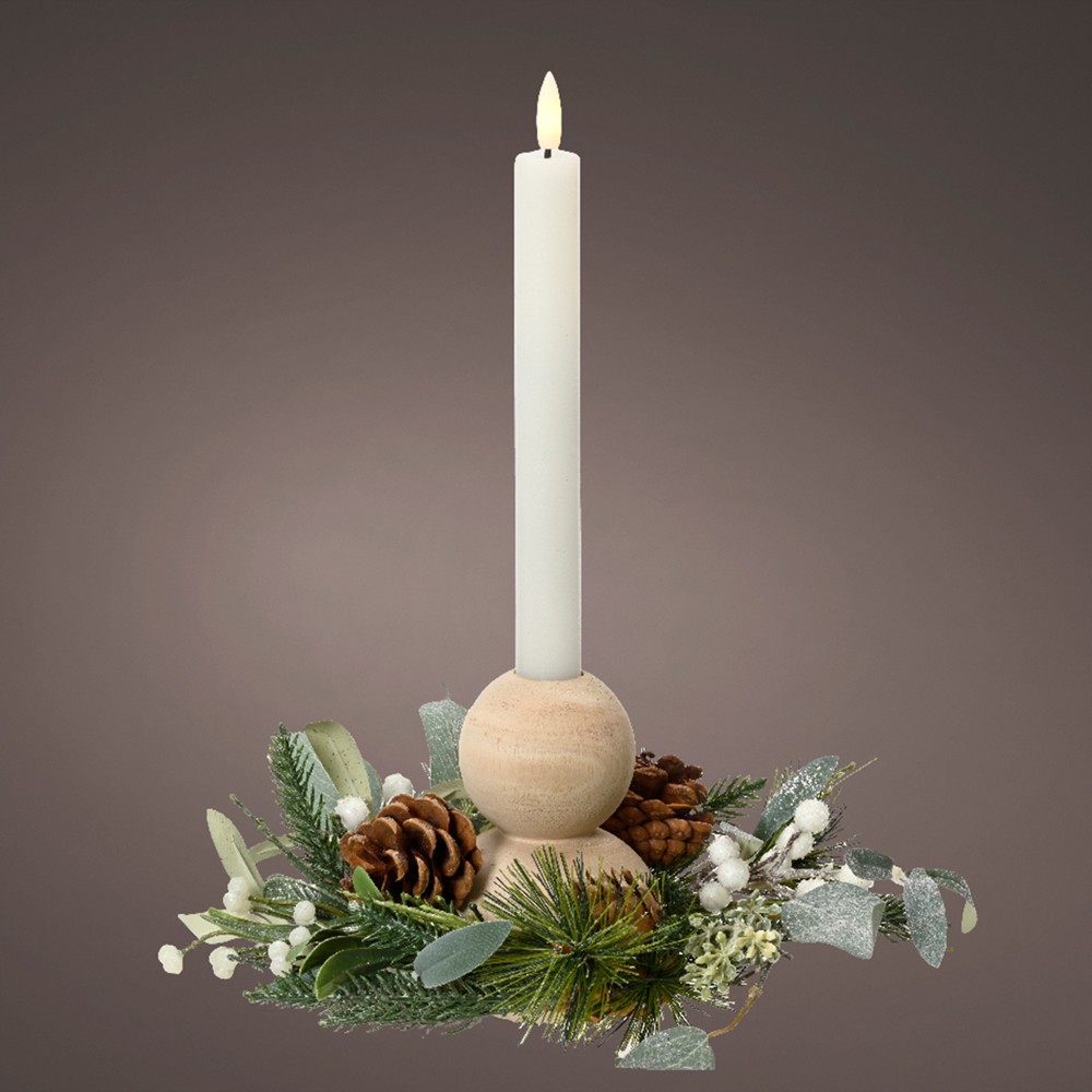 Shtojini diteve magjike te nderrimit te viteve mbajtesen e qiriut me element pishe, ajo do ti japi nje pamje te vecante e mikepritese ambjentit tuaj te hyrjes. Jepini rendesi detajeve dhe beni te pa harrueshme momentet me flake te qerinje ve qe rrine mjaft bukur ne kete mbajtese.