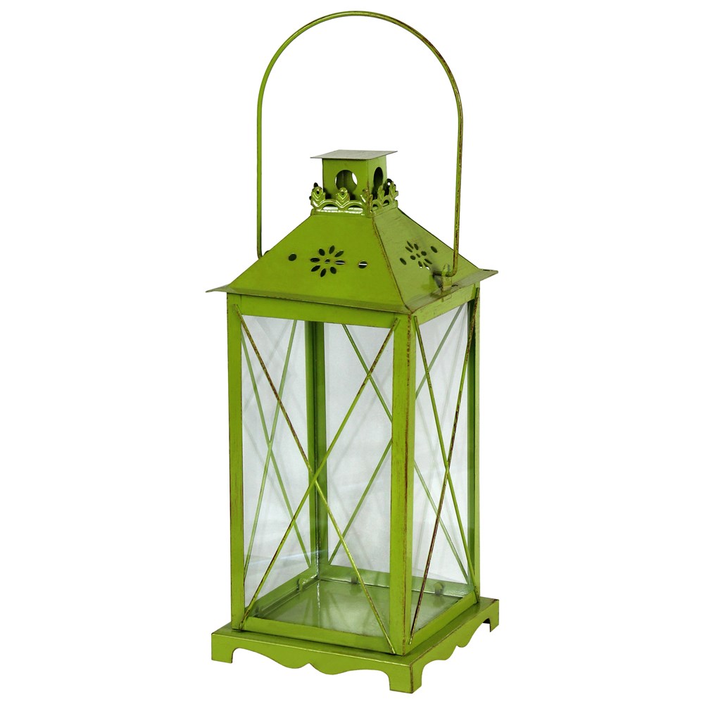 Mbajtëse qiriri, metalik dhe xham, jeshile, 14x14xH34 cm