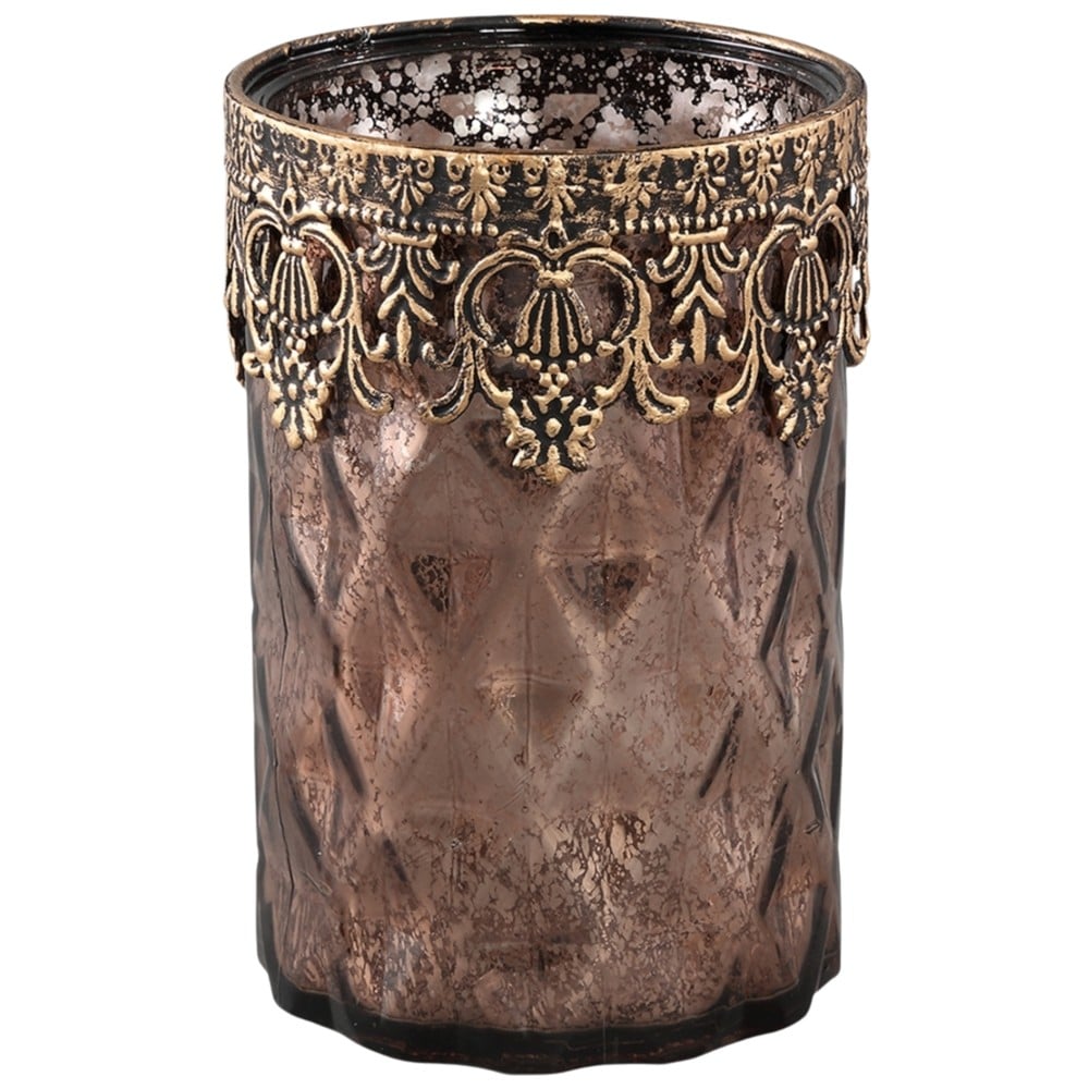 Po vlerësoni:Mbajtëse qiriri, qelq, bronzi, 9x9xH13.5 cm