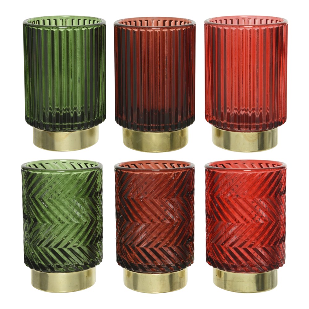 Po vlerësoni:Mbajtese qiriri, qelqi, ngjyre e kuqe dhe jeshile, dia8.5-H13cm