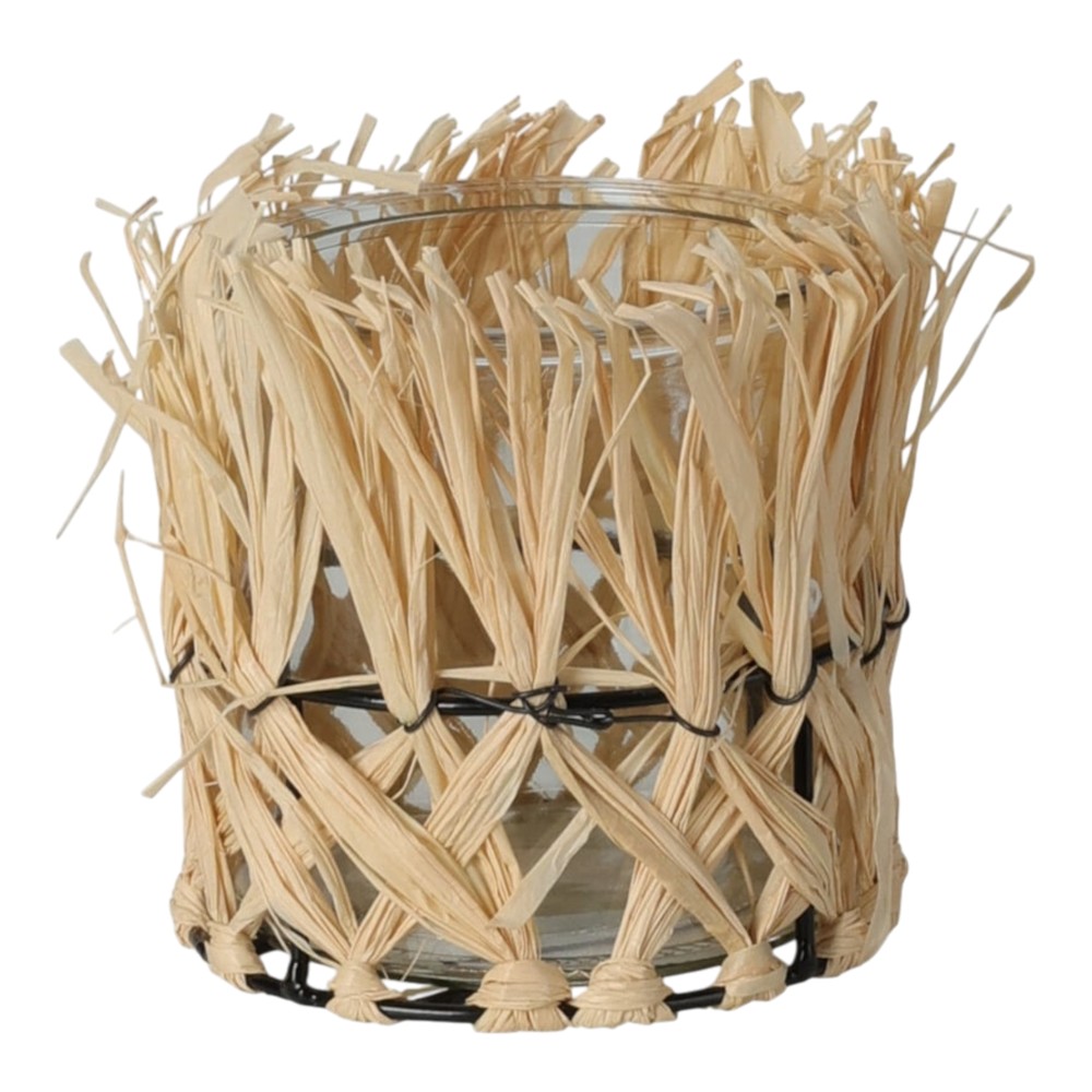 Mbajtëse qiriri, Raffia, qelq/kashtë, transparente/natyrale, 10x10 cm