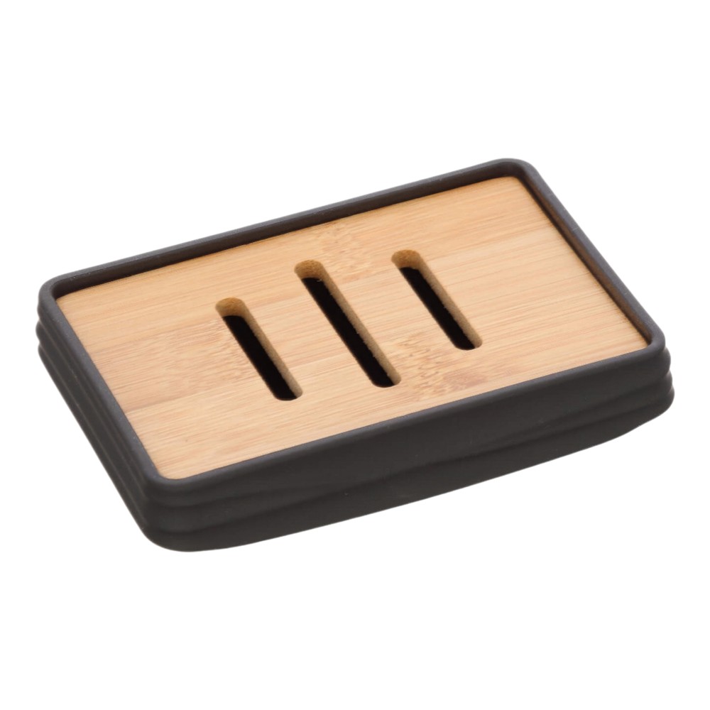 Mbajtëse sapuni ''Alabama'' në material ABS, bambu ngjyrë e zezë, dru natyral. Përmasat, H : 2.5 cm, L : 11.5 cm, D : 8.5 cm