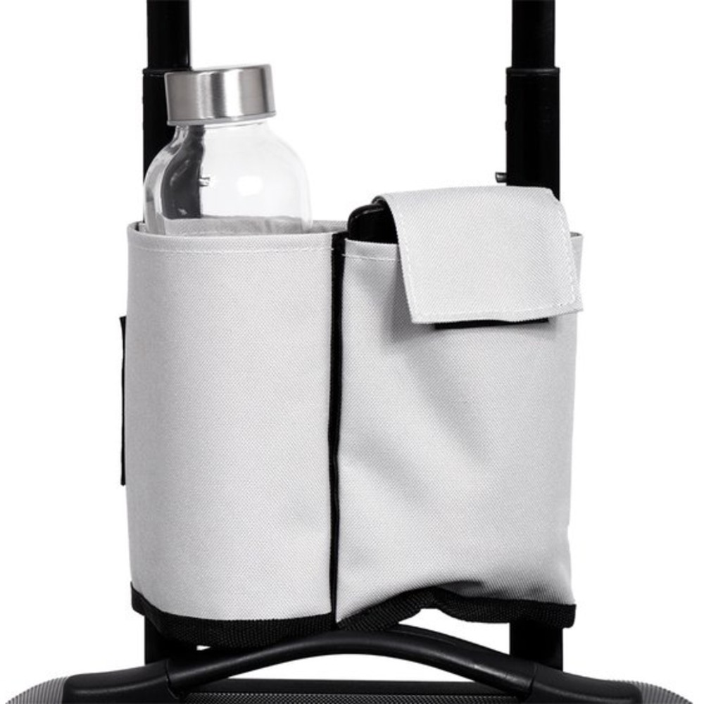 Kjo mbajtëse shishe për valixhe Norländer është një aksesor praktik për çdo udhëtim. Ngjitet mirë në dorezën e valixhes dhe ofron mundësi të shumta ruajtjeje për shishe dhe aksesorë të tjerë të ndryshëm. Ndarja e parë është ideale për sende më të vogla si telefoni juaj, powerbank, kufjet ose karikuesi. Ndarja e dytë është projektuar për të mbajtur shishen e ujit. Në pjesën e pasme, ka një xhep me zinxhir, i përsosur për ruajtjen e sigurt të parave ose dokumenteve të rëndësishme. Ideale dhe e përshtatshme për çdo valixhe udhëtimi.