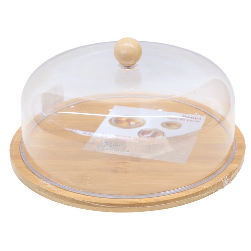 Cake holder/stand with lid, bamboo/glass, brown, Dia.25x25 cm