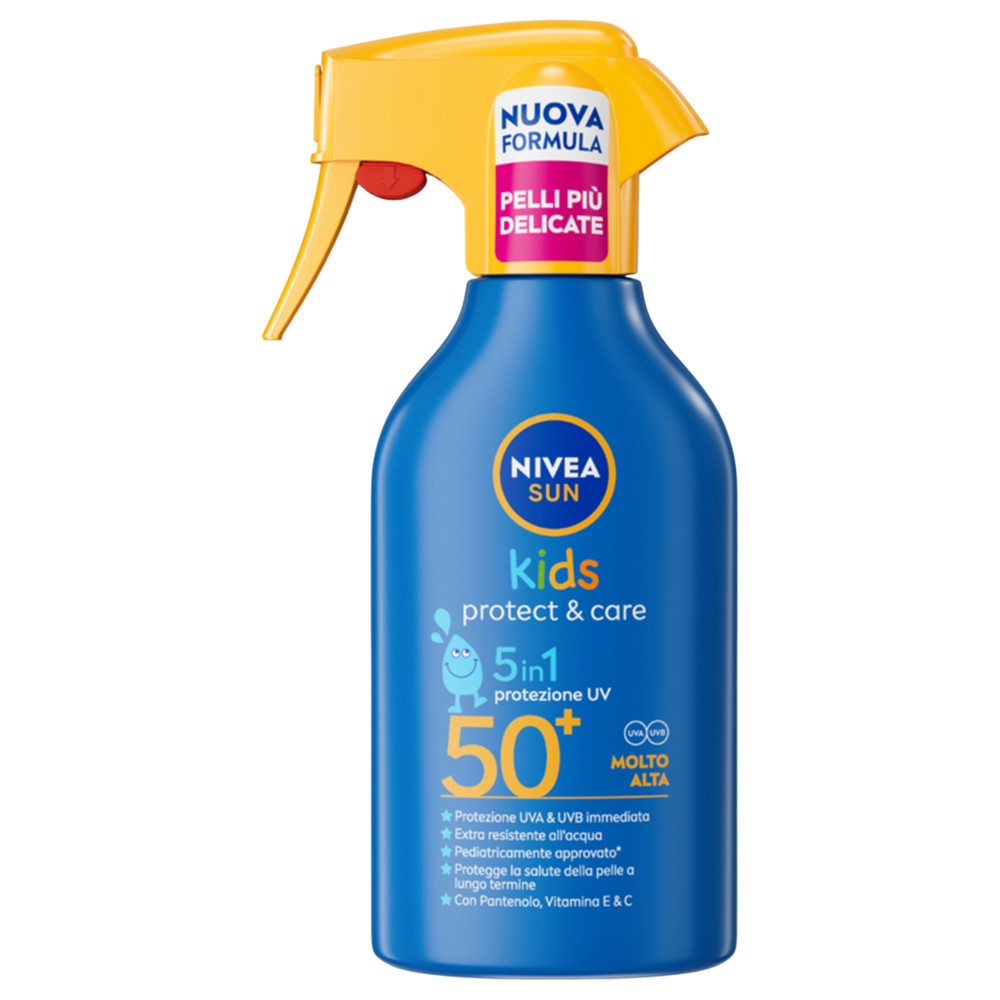 Nivea Protect & Care SPF 50+ është krem mbrojtës i dizajnuar posaçërisht për lëkurën e ndjeshme të fëmijëve. Ai ofron mbrojtje shumë të lartë kundër rrezeve UVA dhe UVB, duke parandaluar djegiet dhe dëmtimet e shkaktuara nga dielli. Formula e tij e butë dhe e kujdesshme ndihmon në ruajtjen e lagështisë natyrale të lëkurës, duke e mbajtur atë të butë dhe të hidratuar gjatë gjithë ditës. Ky mbrojtës është rezistent ndaj ujit dhe djersës, duke siguruar mbrojtje të qëndrueshme gjatë lojërave dhe aktiviteteve në natyrë, duke ofruar kujdes dhe përkujdesje maksimale për lëkurën e fëmijëve. Vendosni një sasi të mjaftueshme kremi në lëkurën e fëmijës para ekspozimit në diell, të paktën 15 minuta më parë. Përsëritni aplikimin çdo 2 orë dhe menjëherë pas notit, djersitjes ose tharjes me peshqir.