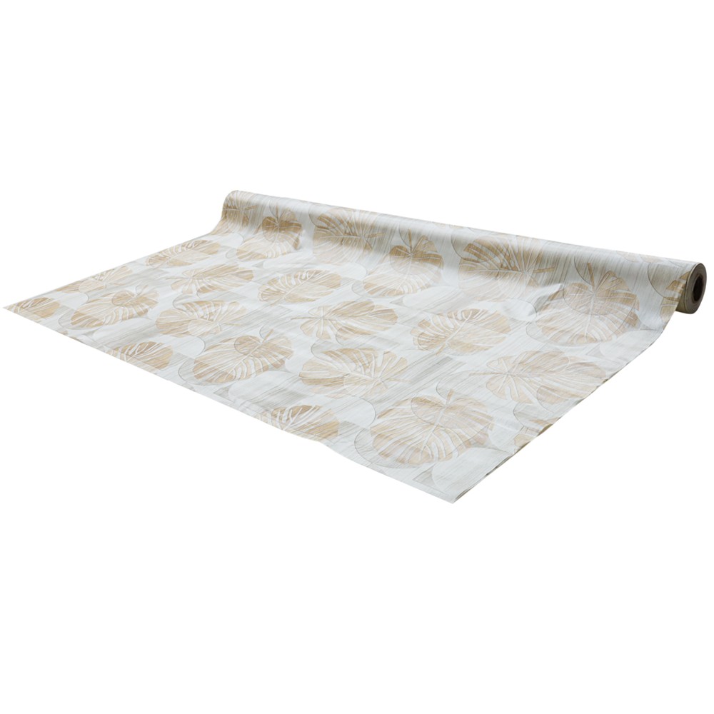 Mbulesë tavoline, PVC, sfond bezhë me dizenjo gjethe ngjyrë floriri, 140 cm