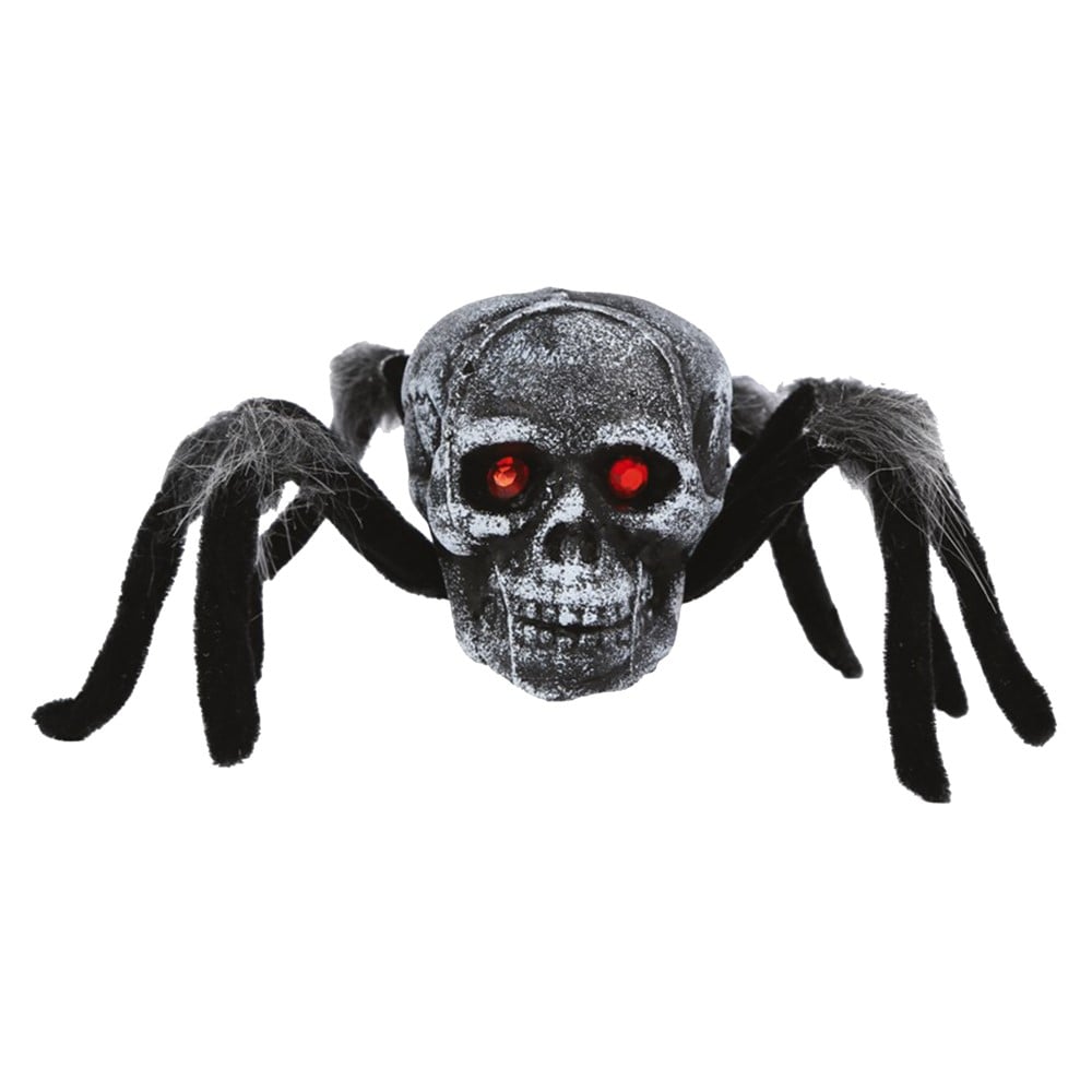 Kjo merimangë me kafkë për Halloween, e bërë nga plastik dhe poliester, është në ngjyrë gri dhe e zezë. Ajo ofron një pamje frikshme dhe misterioze, ideale për të dekoruar hapësira festive. Perfekt për të shtuar një atmosferë të errët dhe argëtuese në festat tuaja të Halloween-it.