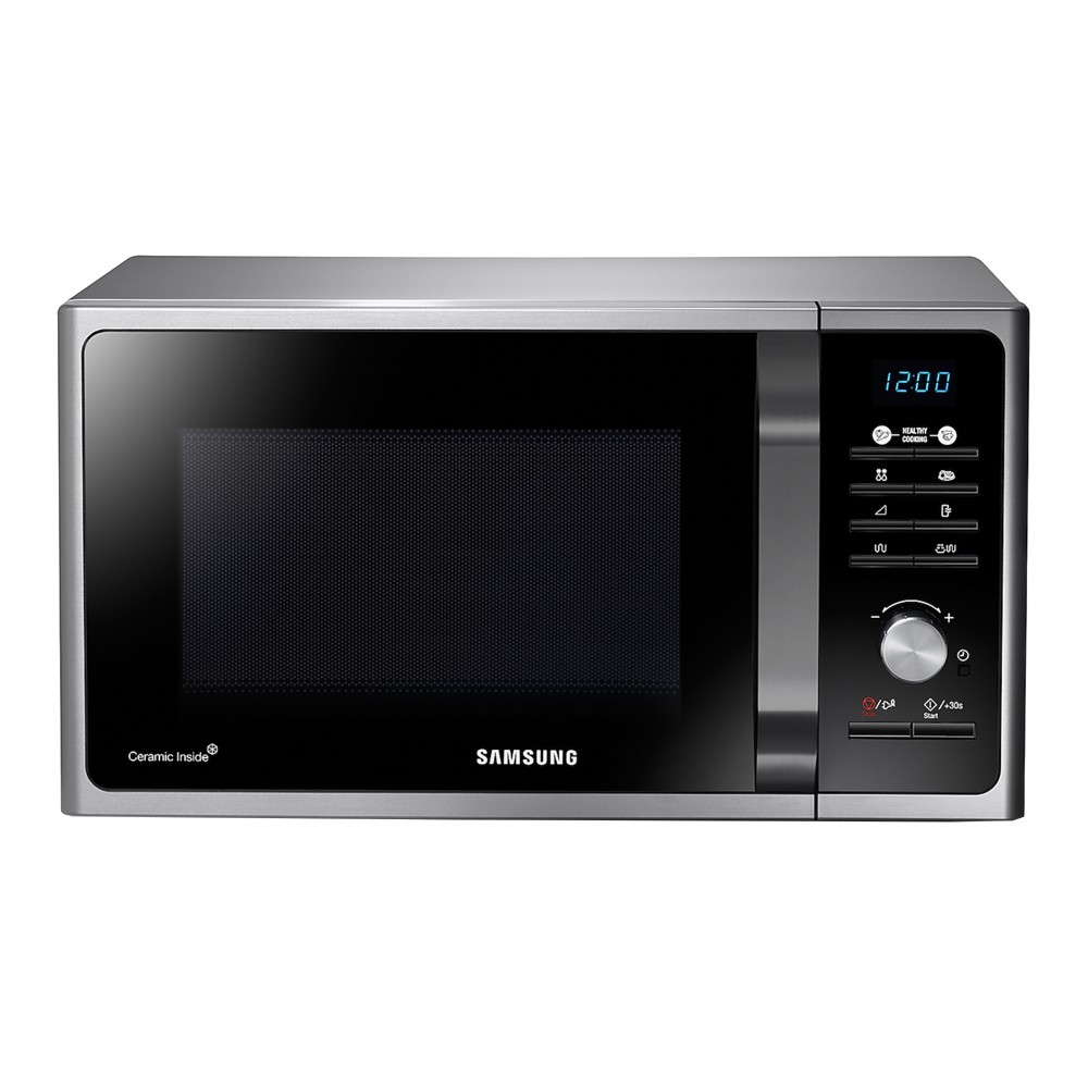 Zëvendësoni ushqimet e gatshme që janë vetëm për ngrohje me ushqime të shëndetshme shtëpie falë furrës me mikrovalë Samsung F300G. Me 20 regjime gatimi të paracaktuara, mund të përgatisni ushqime të freskëta brenda pak minutash. Zbukuroni pamjen e kuzhinës suaj me furrën elegante me mikrovalë F300G, e cila ka një xham të zi të përparmë të inkasuar në një pjesë të jashtme me një motiv me fije dhe me dorezë që i përshtatet, një ekran blu kristal, si dhe një disk rrotullues të detajuar ngjyrë argjendi. Furra me mikrovalë F300G përmban një pjesë të brendshme qeramike të lëmuar që është e lehtë për t'u pastruar dhe nuk gërvishtet apo nuk e humb ngjyrën me kalimin e kohës. Hapësira e brendshme anti-bakteriale dhe rezistuese ndaj gërvishtjeje është krijuar për të ofruar jetëgjatësi. Regjimi ECO në mikrovalën e re Samsung F300G ofron konsumin më të ulët të energjisë në gjendje gatishmërie, duke reduktuar kështu në mënyrë të konsiderueshme përdorimin e energjisë për të kursyer në faturat e energjisë. Realizoni gatime të përkryera çdo herë falë sistemit Triple Distribution - valët në mikrovalë dalin përmes tre pikave në brendësinë e mikrovalës për mbulim më të gjerë dhe për shpërndarje më të saktë të nxehtësisë. Zgjidhni një shumëllojshmëri recetash vendase të programuara paraprakisht në furrën me mikrovalë Samsung F300G dhe provoni shijet që njihni me një prekje të thjeshtë të butonit.
