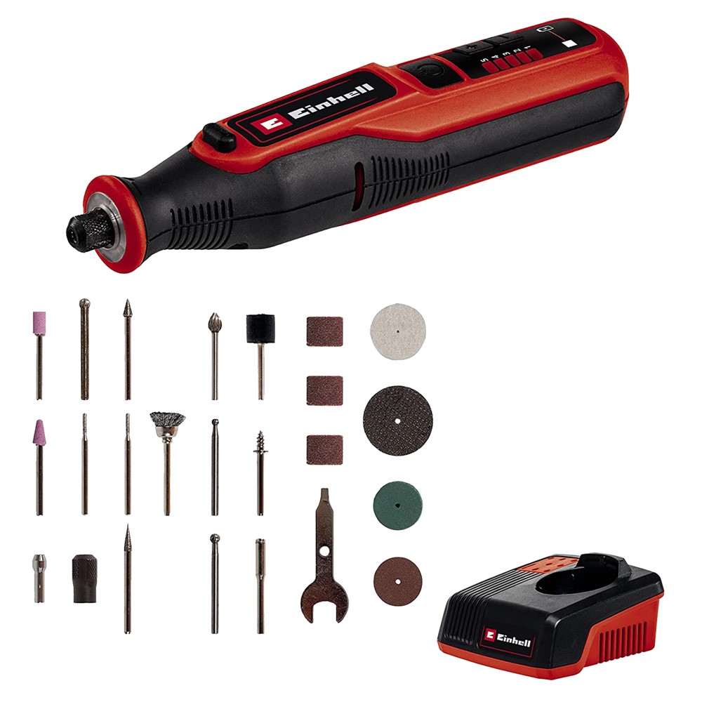 Ndertuar nga materiale te cilesise me te larte dhe projektuar per thjeshtesi dhe prakticitet pune. Me forme ergonomike dhe permasa perfekte per realizimin e projekteve me te veshtira. Bateria prej 7.6 V, siguron fuqi te mjaftueshme per pune te vazhdueshme dhe kompetitive. Me lehtesi te larte adaptimi, fale konceptit multifunksional dhe adaptoreve pjese e setit. Me mundesi punimi ne zmerilim, gdhendje, prerje shpim dhe polerim te materialeve te ndryshme si metali, druri dhe qeramika. Vegel profesionale, ideale per realizimin e cdo projekti pune .