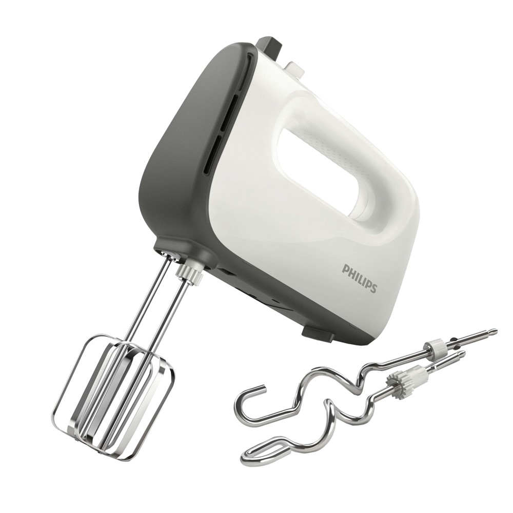 Mixeri Philips ju ndihmon të bëni ëmbëlsira të shijshme për familjen tuaj. Përzierja me ajër përmes majave konike lejon një kohë më të shkurtër të rrahjes dhe një përzierje më të butë të tortës. Motori i tij i fuqishëm 450 W do ta bëjë të lehtë pergatitjen.