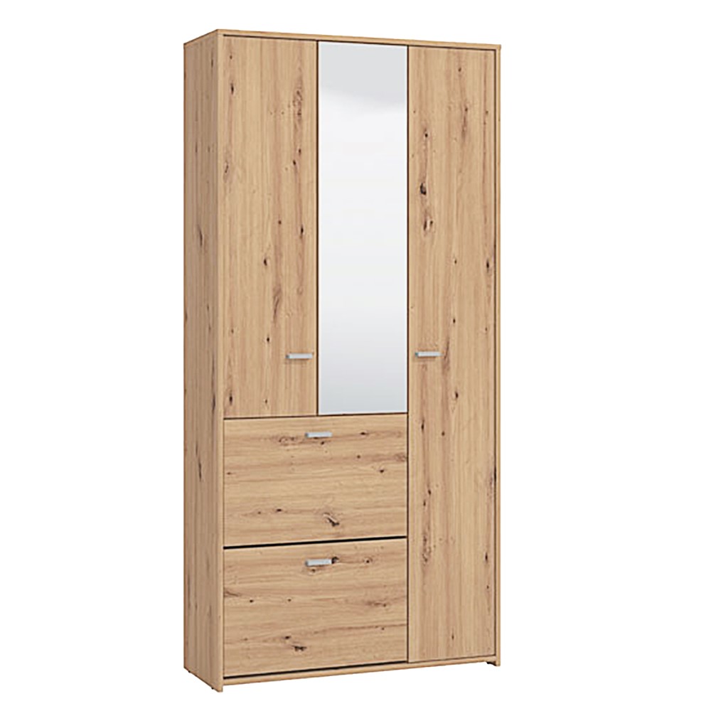 Mobilie koridori, Congro me ngjyrë të lisit, është një zgjidhje funksionale dhe moderne për dekorimin e korridorit. Brendësia përbëhet një pjesë me rafte, dhe gjithashtu ka dy rafte shtesë për ruajtjen me këpucë me dy rreshta. Pasqyra në pjesën qendrore, përveç funksionalitetit, gjithashtu kontribuon në tërheqjen estetike.
