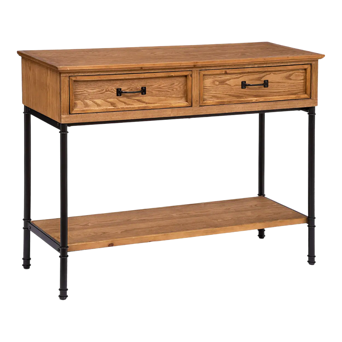 Mobilje për dhomën e ndenjes ose për çdo zonë tjetër të shtëpisë që dëshironi në ngjyrë kafe dhe stil klasik. Ka 2 sirtarë dhe 1 raft për të ruajtur dhe organizuar gjërat tuaja. Është prej druri, prej bredhi dhe mdf. Korniza e saj është metalike në ngjyrë të zezë, ashtu si dhe dorezat që ka për të hapur sirtarët. Lartësia ndërmjet rafteve është 43 cm. Produkti vjen i pamontuar dhe montohet sipas udhëzimeve që ka në paketim.
