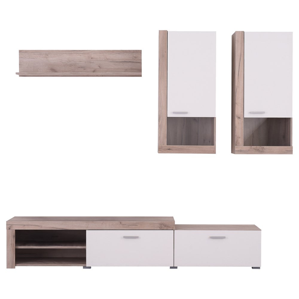 Mobilja e televizorit BELT improvizon nje skene teatrore fal stilit bashkohor. Ky grup gjithëpërfshirës mundëson ekspozime dhe kompozime të zgjuara për vendosjen e televizorit dhe sendeve të ndryshme dekorative. Punuar me cilësi dhe melaminë të përzgjedhur me finiturë miqësore lisi dhe të bardhë do të sjellë cilësi dhe balanc duke organizuar hapësirën e ndenjes në mënyrë efektive. Mobiloni shtëpinë tuaj me ide të reja dhe mundësi pafund vetëm në Megatek.