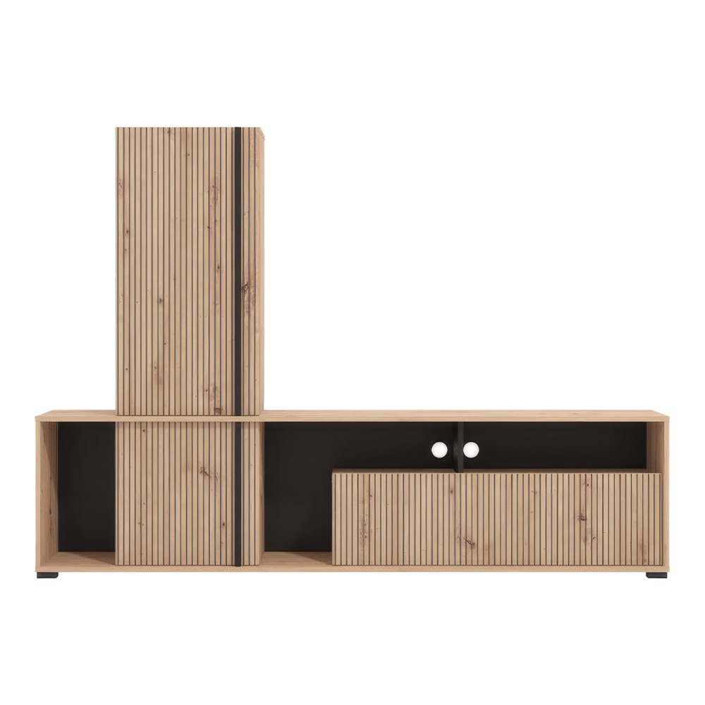Mobilje televizori dhe ekspozitor, Chaina, melaminë, lisi natyral/e zezë, 195.5x33xH139.5 cm