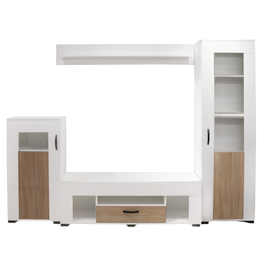 Mobilje televizori, melaminë, e bardhë/sonoma, 260x43/34xH180 cm