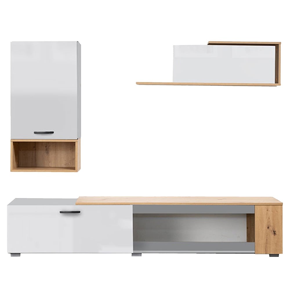 Mbajtësi i televizorit dhe ekspozitori ''Regal Ring'' është një zgjedhje e shkëlqyer për të sjellë një prekje të modernitetit dhe elegancës në ambientin tuaj. Me një dizajn të rafinuar dhe të sofistikuar, ky produkt ofron një zgjidhje të përshtatshme për të mbajtur televizorin tuaj si dhe për të ekspozuar objekte të dekorimit ose pajisje të tjera. Krijuar nga melaminë me cilësi të lartë në ngjyrë artizan e kombinuar me të bardhë kjo mobilje ofron qëndrueshmëri dhe një pamje moderne. Regal Ring është zgjedhja e përsosur për ata që kërkojnë një mbajtës televizori dhe ekspozitor të shkëlqyer, që të plotësojë nevojat e tyre në ambientet e tyre të banimit ose të zyrës.