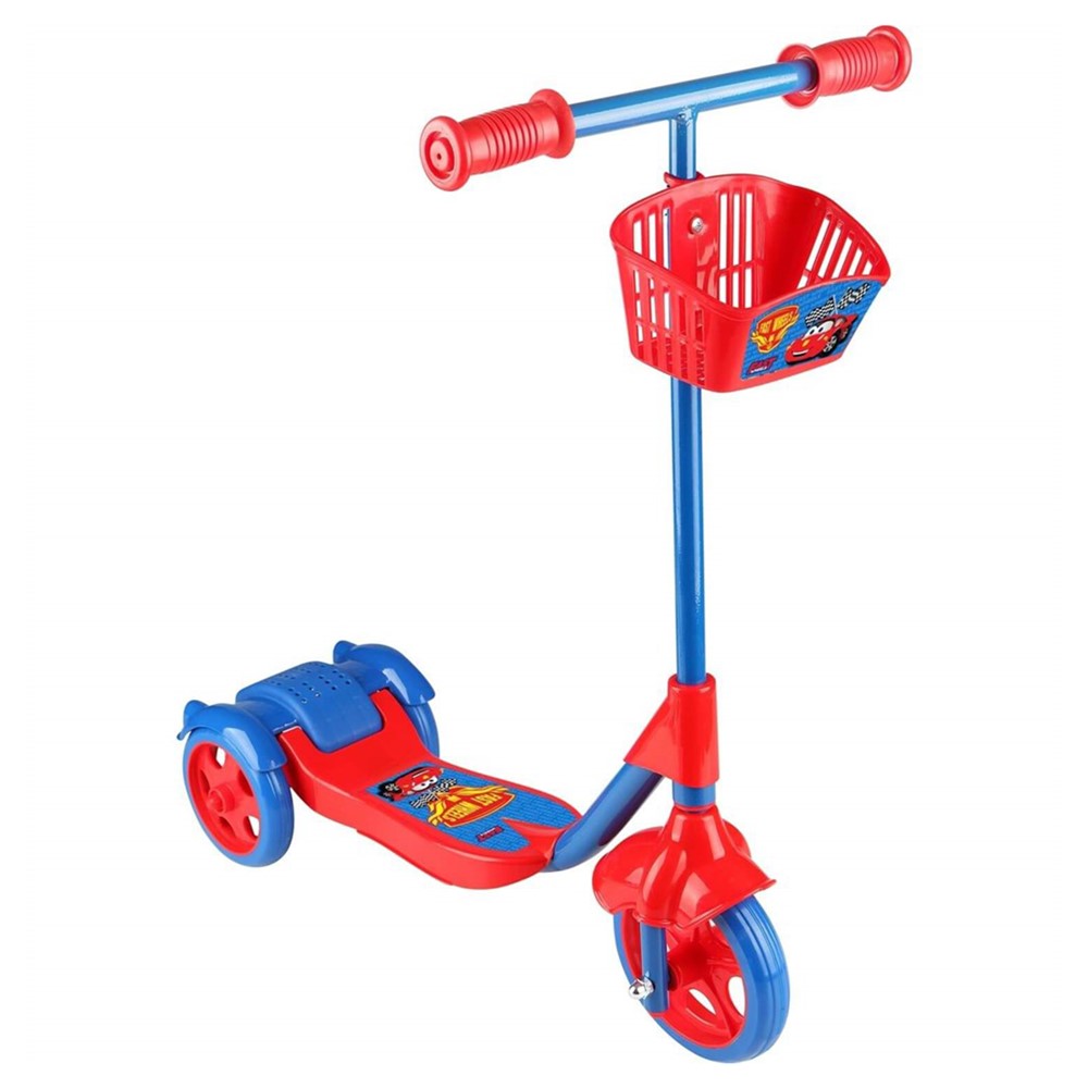Monopatinë me 3 rrota dhe me kosh, për fëmijë, prej alumini dhe materiali plastik, në ngjyrë të kuqe dhe blu. Monopatina është e pajisur me një timon me gjatësi të rregullueshme, i cili mund të përshtatet me gjatësinë e fëmijës për të lehtësuar përdorimin, si edhe është e pajisur me 2 rrota në pjesën e pasme, që shërbejnë për të ndihmuar fëmijët e vegjël të ruajnë ekuilibrin. Ndihmon në zhvillimin e aftësive motorike, zhvillimin e muskujve dhe koordinimin e këmbëve dhe duarve, si dhe zhvillimin e aftësive të të mësuarit dhe të perceptimit tek fëmijët. Materiali përbërës dhe boja nuk kanë përmbajtje toksike apo të dëmshme për fëmijët dhe produkti është i çertifikuar për siguri në përdorim. Ky produkt është i përshtatshëm për fëmijë të moshës 3-5 vjeç.