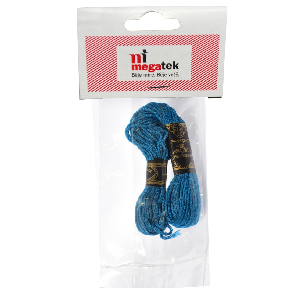 Muline për qëndisje, prej materiali , 100 % pambuk, në ngjyrë të kaltër, me gjatësi në 8.75 yd. Përdoret për të qëndisur, mbulesa, carcafë, imzhe të ndryshme në copa të posacme. Pvrdoren në shtëpi, rrobaqepsi, qëndistari etj.
