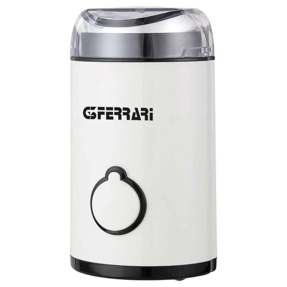 Mulli kafeje G3 Ferrari, perfekt për bluarjen e shpejtë të kafesë dhe erëzave. Me tehe dhe enë çeliku inox, funksionim PULSE, kapacitet 50g, kapak me pajisje sigurie, ruajtje kablloje në bazë, këmbë anti-rrëshqitëse, furnizim me energji 220-240V, 50-60Hz, fuqi 150W. Përmasat: diametri 10 x lartësia 18.7 cm.
