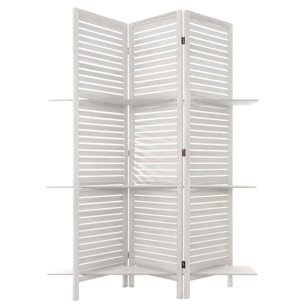 Ndarëse ambjenti me 3 ndarje, Tiam,material paulonia/mdf, ngjyrëe bardhë. Shumë më tepër se një aksesor i thjeshtë dekorativ, ai është një aleat i vërtetë i mobiljeve në dispozicionin tuaj. Paneli i fibrave të drurit do të plotësojë të gjitha dëshirat tuaja për dekorim natyral. Ngjyrat e propozuara ndjekin edhe një herë konceptin e thjeshtë dhe të rafinuar.
