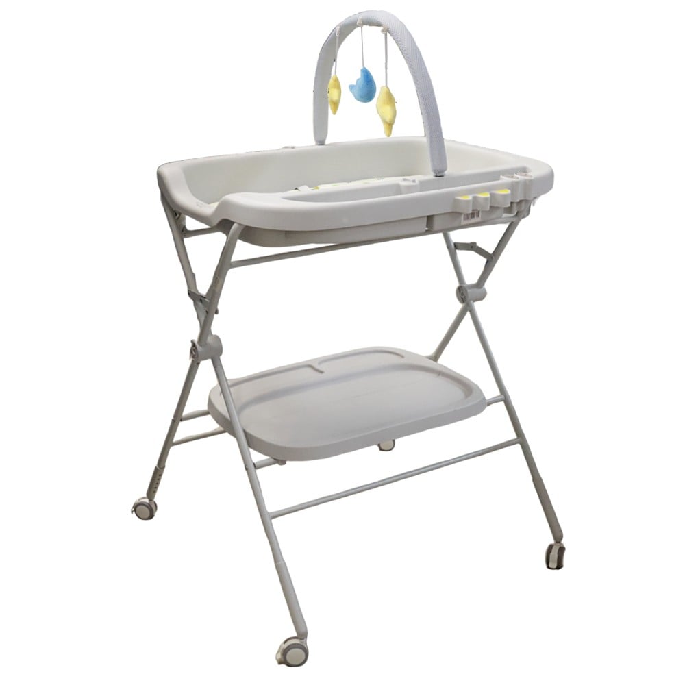 Ndërruese me këmbë për fëmijë, e bërë nga alumin dhe plastike në ngjyrë gri, ofron lehtësi dhe komoditet gjatë ndërrimit të fëmijës. E qëndrueshme dhe praktike, ajo siguron një mbështetje të sigurt për fëmijët, duke e bërë procesin më të lehtë për prindërit.
