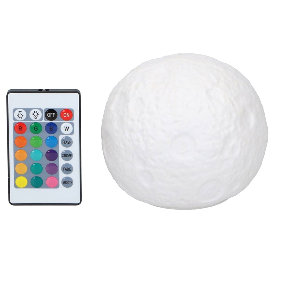 Llamba ne formen hënës vjen me 16 ngjyra RGB, dhe 16 ngjyrat mund të ndriçojnë ose zbehen. Me telekomandë. Mund të ndryshoni ngjyrën e dritës dhe shkëlqimin.