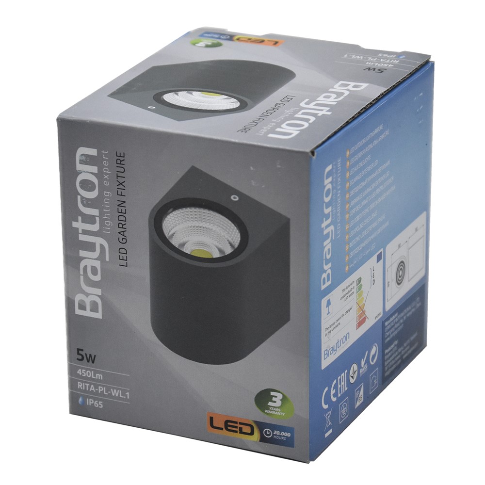 Ndriçues i jashtëm mural BRAYTRON, LED, 3000K, metal/xham, IP44, ngjyrë të zezë