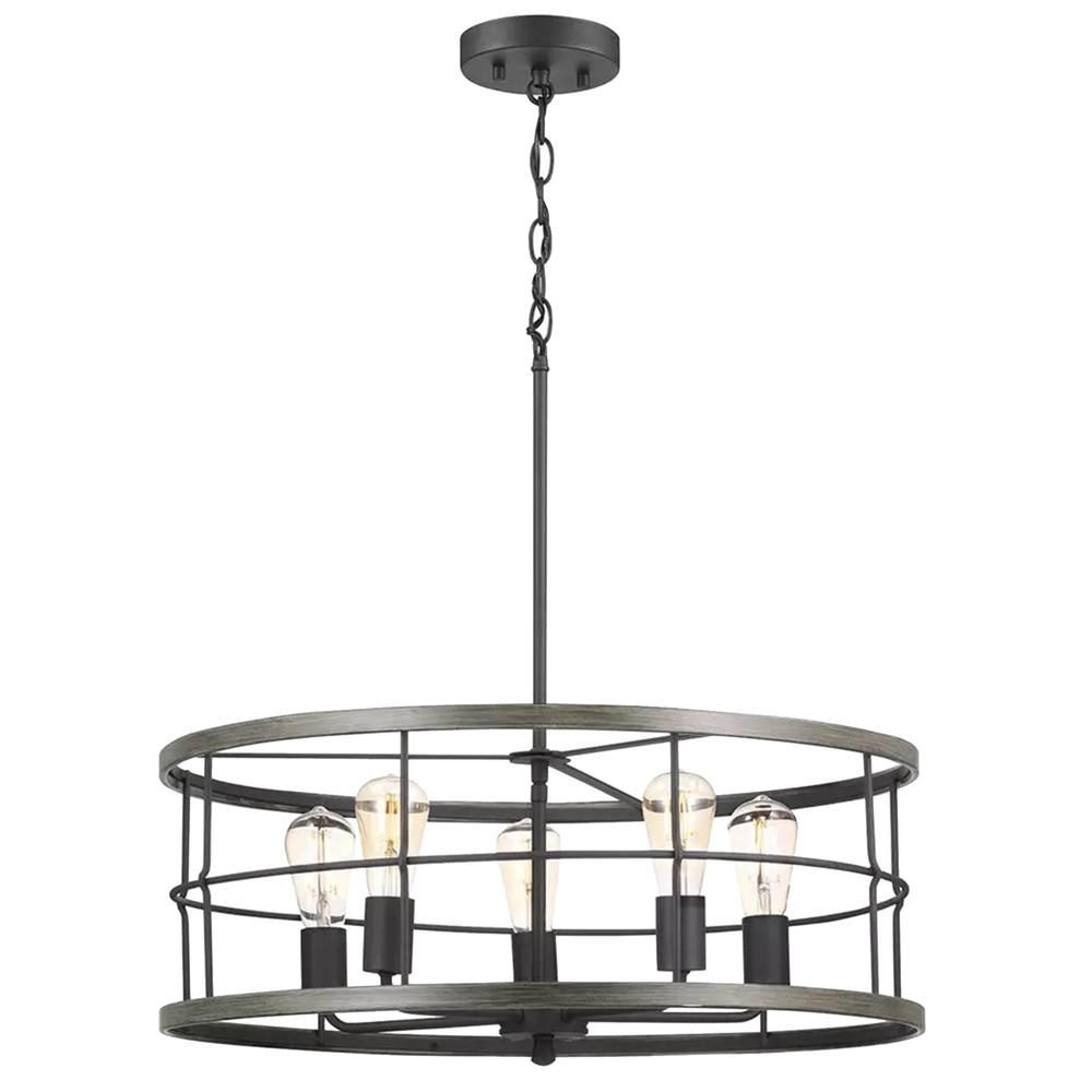 Ndricues I varur, 5xE27, I zi / gri. Materiali i tij metalik dhe forma karakteristike e klasifikon ne nje ndricues industrial i cili mund te kombinohet me cdo ambient tuajin. Dizajni i hapur dhe numri i portollambave ofron mundesine e ndricimit sa me te mire te ambientit tuaj sado i madh te jete