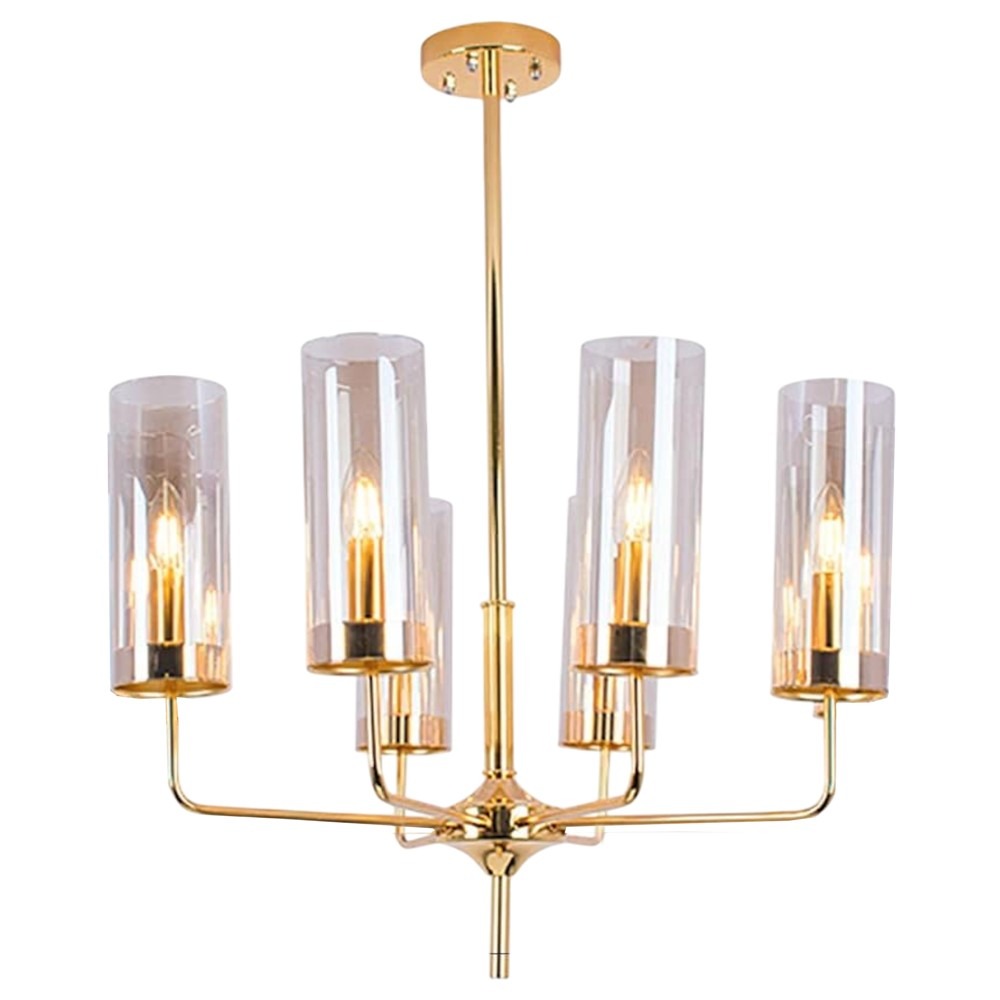 Ndriçues i varur me 6 burime drite E14, diametër 50 cm, prej metali dhe qelqi në ngjyrë bronze. Stil elegant dhe klasik, ideal për sallone, dhoma ngrënieje apo ambiente luksoze me atmosferë të ngrohtë dhe sofistikuar.