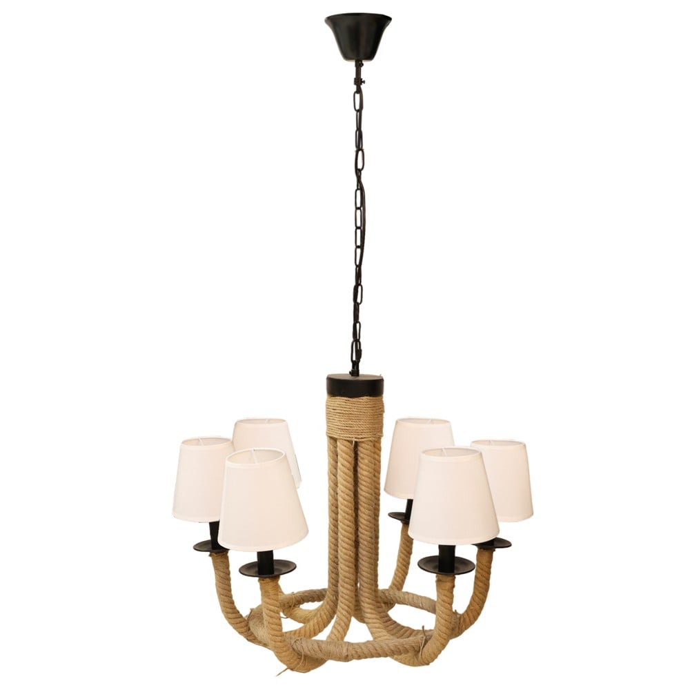 Ndricues I varur, 6xE14, metalik I veshur me litar, Ngjyre natyrale/gold, D65 cm. Ndriçuesi i varur i stilit klasik do të ishte një zgjedhje e përsosur për ti shndërruar hapesirat tuaja të brendshme të banimit, të bareve apo restoranteve në hapsira mikpritëse dhe plot stil. Ky ndriçues i varur me skelet hekuri të ndërthurur me xhamin e lakuar me ngjyrë të verdhë, ju jep mundësi të pafundme kombinimesh me elementë të tjerë të dekoreve tuaja me ngjyrë bezhë, kafe, të kuqe, të verdhë etj. Kujdesuni për detajet që bëjnë diferencën, që shtojnë stil dhe përsosin estetikisht e funksionalisht hapsirat tuaja me një çmim tepër ekonomik.