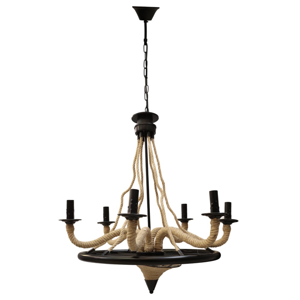 Po vlerësoni:Ndricues I varur, 6xE27,D.65cm, H.45cm, litar natyral