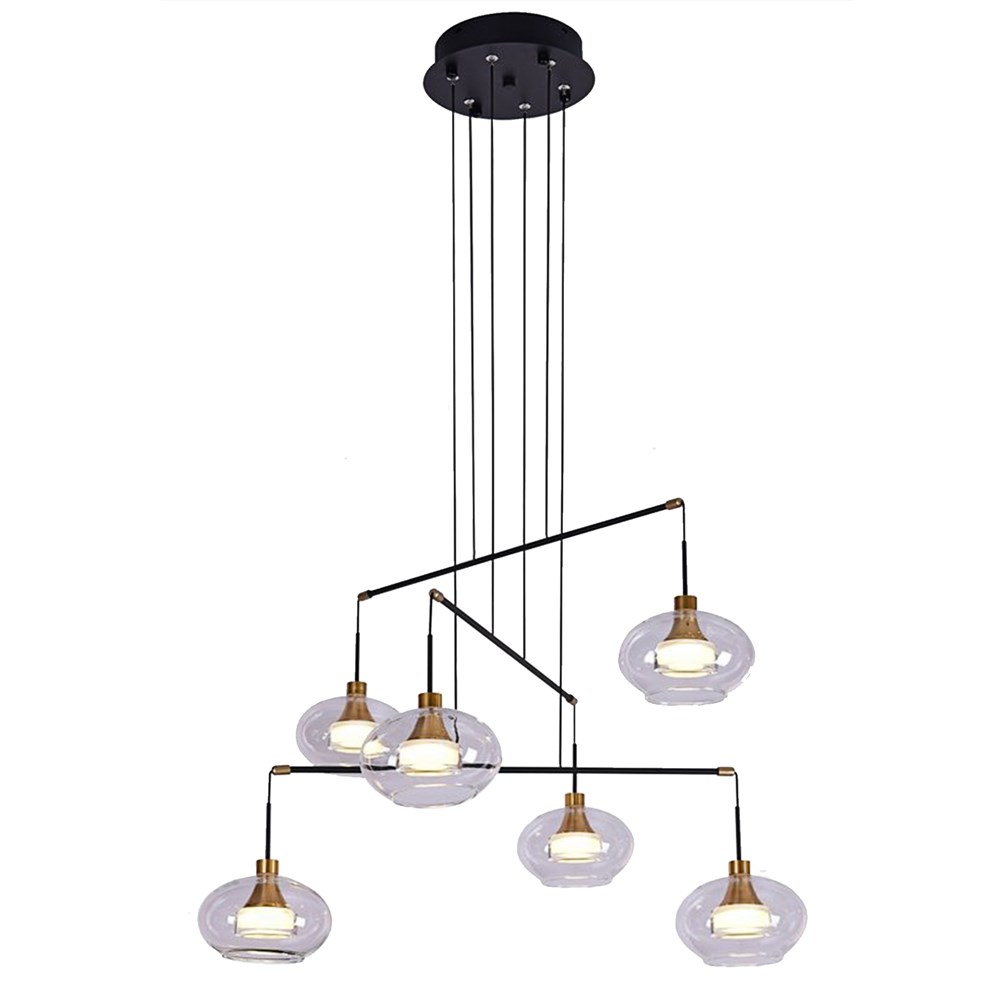 Ndriçues i varur, 6xLED, 3200 K, Ø65 cm, metal, xham. Ndriçuesi i varur i stilit modern do të ishte një zgjedhje e përsosur për t'i shndërruar hapësirat tuaja të brendshme të banimit, të bareve apo restoranteve në hapësira mikpritëse dhe plot stil. Ju jep mundësi të pafundme kombinimesh me elementë të tjerë të dekoreve tuaja me ngjyrë bezhë, kafe, të kuqe, të verdhë etj. Kujdesuni për detajet që bëjnë diferencën, që shtojnë stil dhe përsosin estetikisht e funksionalisht hapësirat tuaja me një çmim tepër ekonomik.