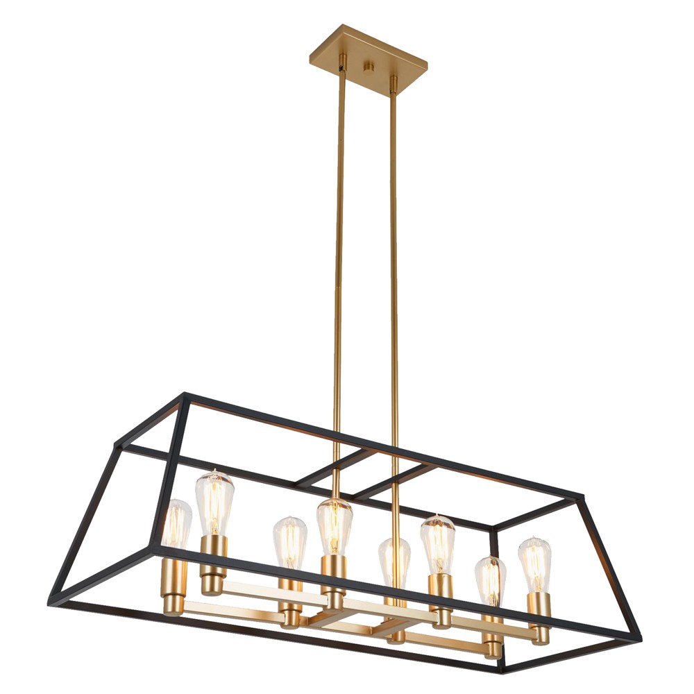 Ndricues I varur, 8xE27, 88.7x35x163 cm, I zi /gold. Nëse ambjenti juaj i banimit ka karakteristikat e një ambjenti modern ku mbizoterojnë kryesisht ngjyrat e forta , të ndezura dhe linjat e drejta. Ajo që ju kerkoni është një element i vetëm i cili do të mirintegrohet dhe do ta qëtesojë atmosferen dhe do të ndryshoj totalisht pamjen e ambjentit tuaj të banimit, zgjidhni këte ndriçues të varur.