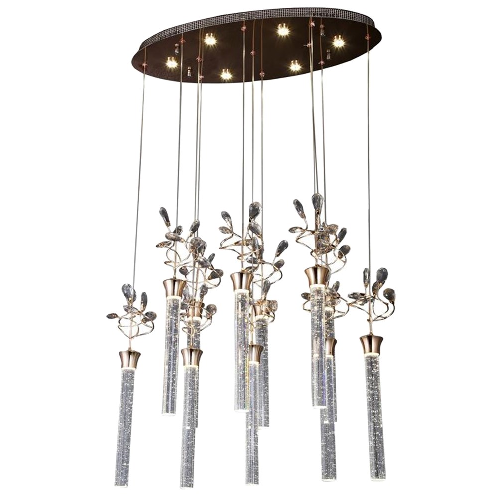 Ndriçues I varur LED Lambario, 84W, 4200 lm, 4000 K, D70xH110 cm, metal/kristal, ngjyrë ari/metali, IP20