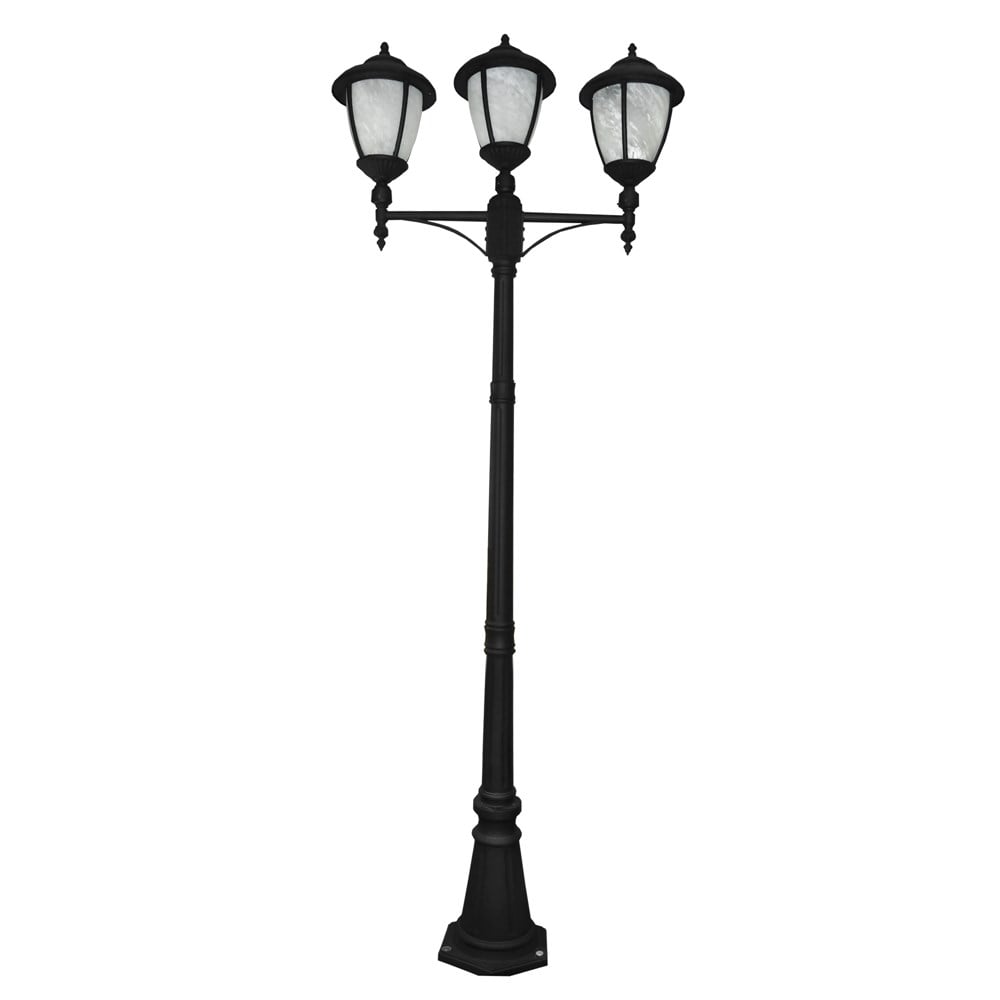 Po vlerësoni:Ndricues kopshti shtyllë tre degësh, 3x60W, alumin+xham, i zi