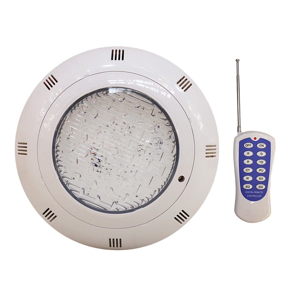 Ndricues LED per pishina, 12W, RGB, IP68, eshte zgjedje ideale per ndricimin e pishinave . Ndricuesi vendoset brenda ne uje, fale tensionit te tij 12V e ben ate shume te sigurt per kontaktin me rrymen elektrike. Eshte I pajisur me telekomante duke ju ofruar te zgjidhni vete ndricimin e deshiruar
