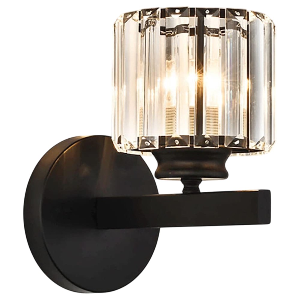 Ndriçues muri me një burim drite E27, dimensione 14x24 cm. Dizajn elegant prej kristali në ngjyrë të zezë. I përshtatshëm për ndriçim dekorativ në dhoma gjumi, korridore apo ambiente luksoze.
