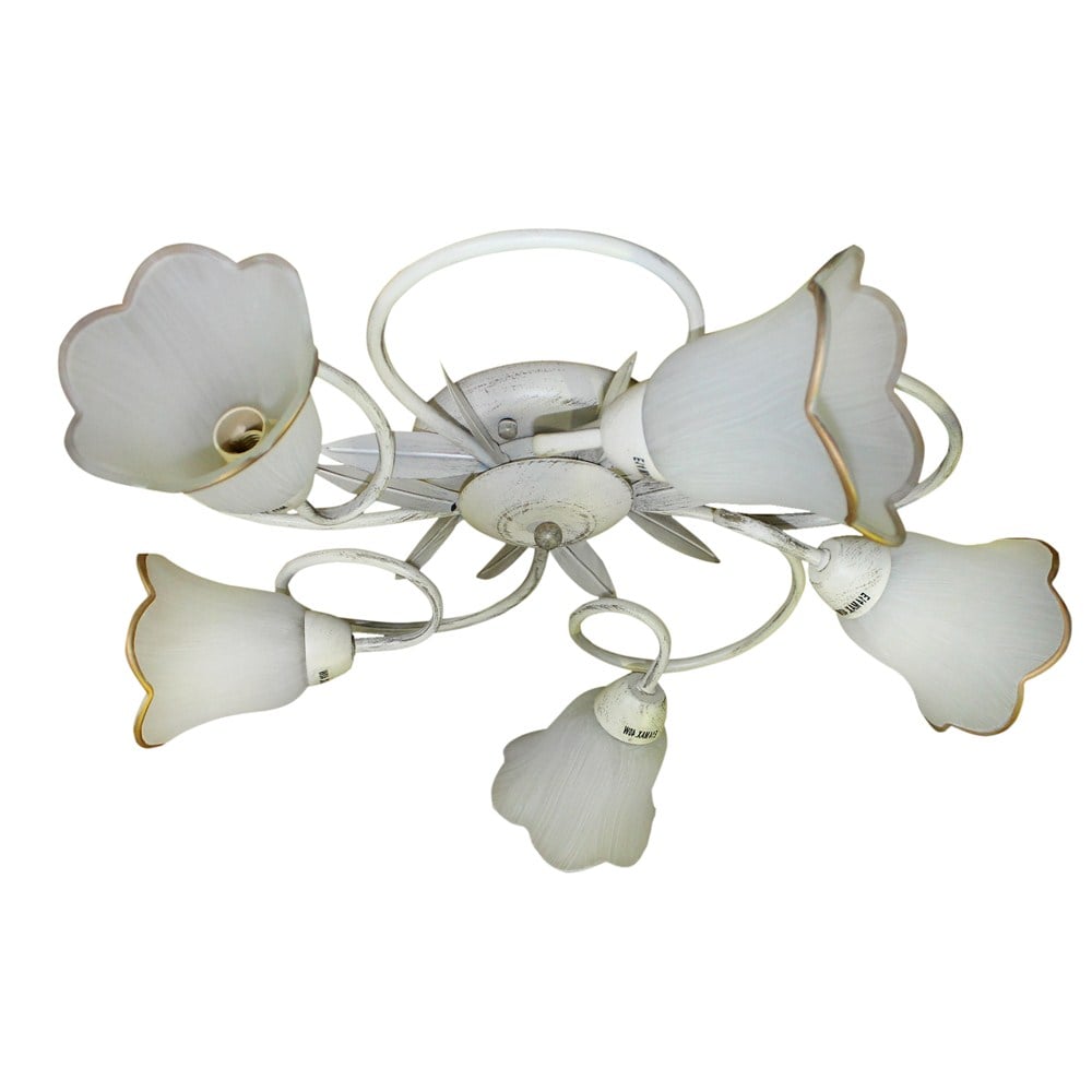 Po vlerësoni:Ndriçues tavani, E14, 5x40W, qelq i bardhë, metal ngjyrë flori