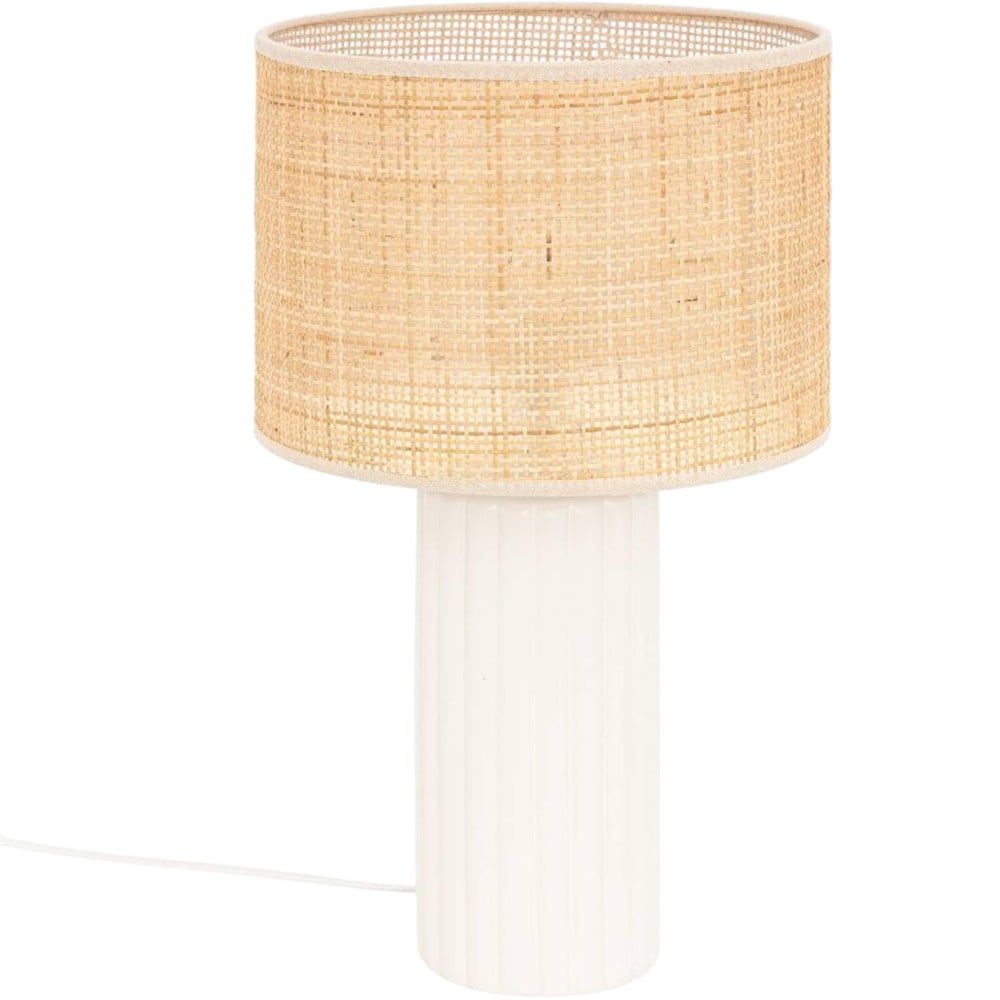 Ndriçues tavoline me lartësi 47 cm, i pajisur me portollambë E14. Trupi prej qeramike në ngjyrë të bardhë i jep një pamje të pastër dhe elegante, ideale për komodina, tavolina pune ose ambiente të brendshme me stil minimal.