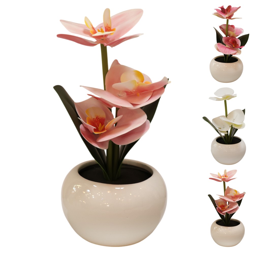 Ndriçues tavoline, Orkide, 9x25cm, me bateri – një llampë me dizajn të bukur në formë orkidee, që ofron një atmosferë të ngrohtë dhe elegante. Me përmasa 9x25 cm dhe funksionim me bateri, ky ndriçues është ideal për përdorim në tavolina, rafte, ose si dekor për ambiente të ndryshme. Duke punuar pa nevojën e lidhjes me rrjetin elektrik, është shumë praktike dhe fleksibile për hapësira të ndryshme. Perfect për dhoma gjumi, sallone ose ambiente të tjera të brendshme.